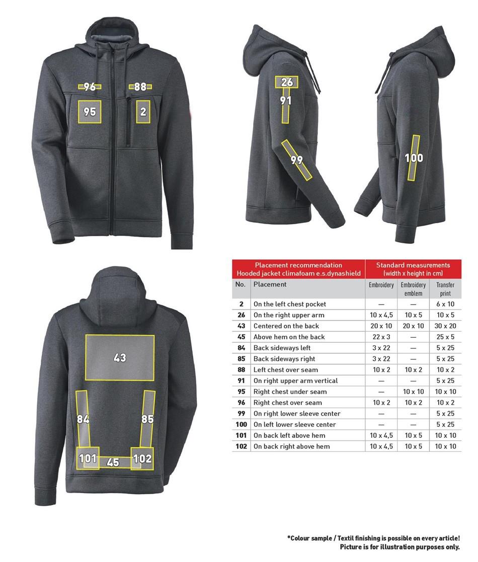 Material: 90 % polyester / 10 % elasthane (approx. 270 g/m²).